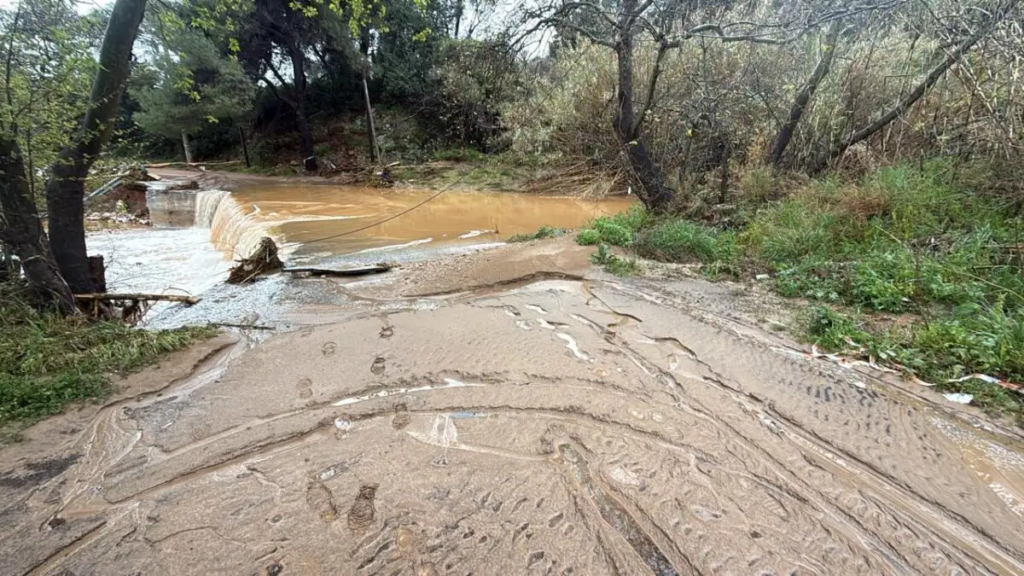 Στο Πικέρμι στην οδό Ήμερου Πεύκου έσπασε το ρέμα από τα ορμητικά νερά, υπερχείλισε ο δρόμος που παραμένει κλειστός.