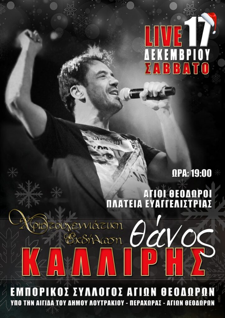 Ο Εμπορικός Σύλλογος Αγίων Θεοδώρων διοργανώνει μεγάλο εορταστικό live με τον καταξιωμένο τραγουδιστή – συνθέτη και στιχουργό Θάνο Καλλίρη.